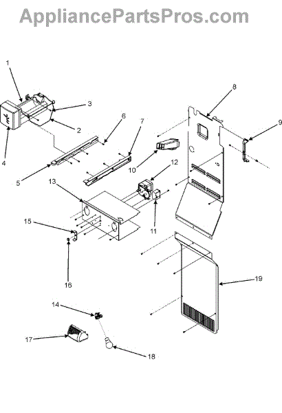 This ice maker cover shields the front of the ice maker assembly, protecting the module and moving parts from dust and accidental contact. Replacing a cracked or missing cover restores a clean, finished appearance and keeps components protected.