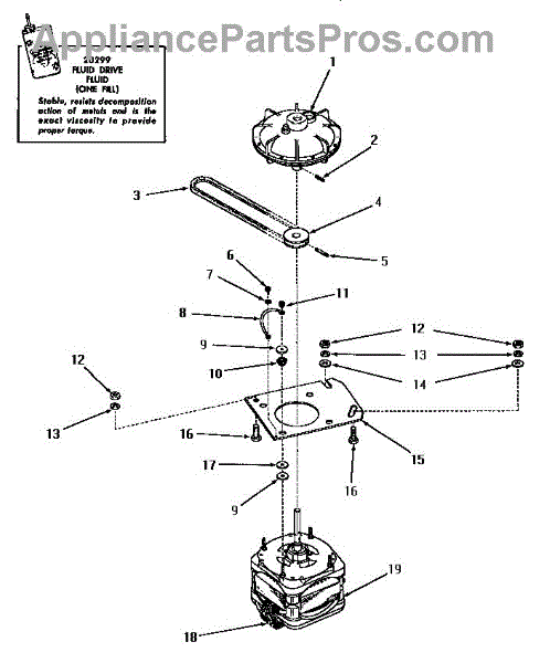 Parts for Amana DA3660: 15 - Motor And Fluid Drive Parts