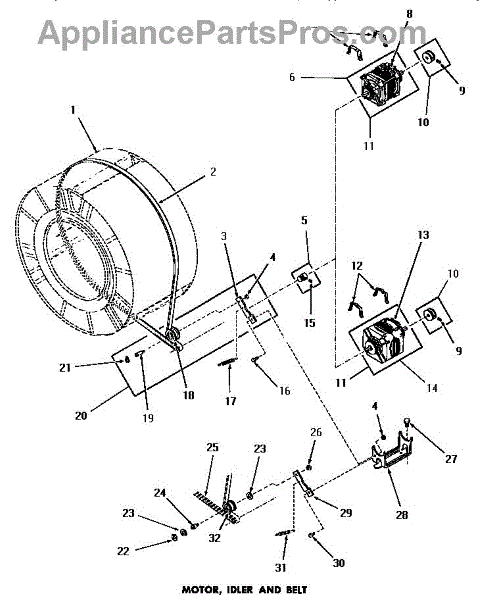 Parts for Amana DE1021: 15 - Motor, Idler & Belt Parts