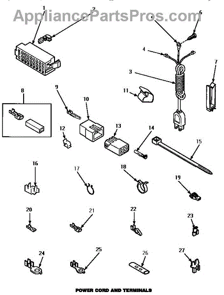 Parts for Amana AWM392W: 15 - Power Cord & Terminals Parts