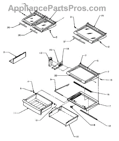 Parts for Amana SRD25S5E / P1190302W E: 15 - Shelving & Drawers (Ref) Parts