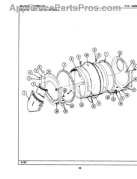 Fiber washer seals drum roller shaft connections in dryers. Replace when worn to prevent leaks and noise. Confirm fit with your model number.