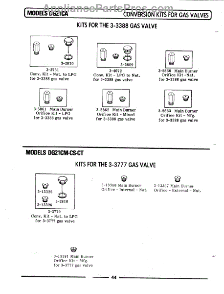 Parts for Maytag DG21CT: 16 - Conversion Kit Parts