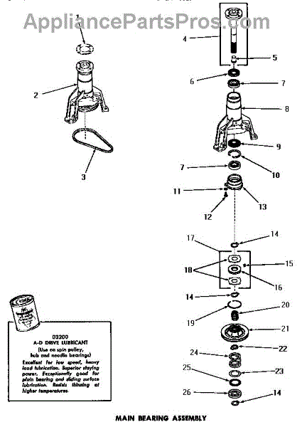 Parts for Amana DA3080: 16 - Main Bearing Assy Parts