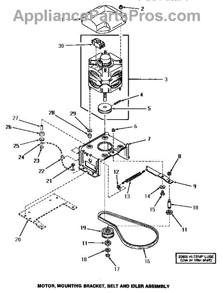 Parts for Amana UG8290: 16 - Motor, Mtg Bracket, Belt & Idler Assy Parts