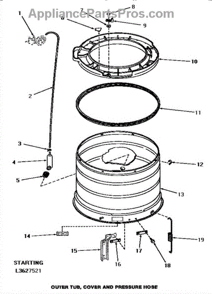 Parts for Amana HA2620: 16 - Outer Tub, Cover & Pressure Hose Parts