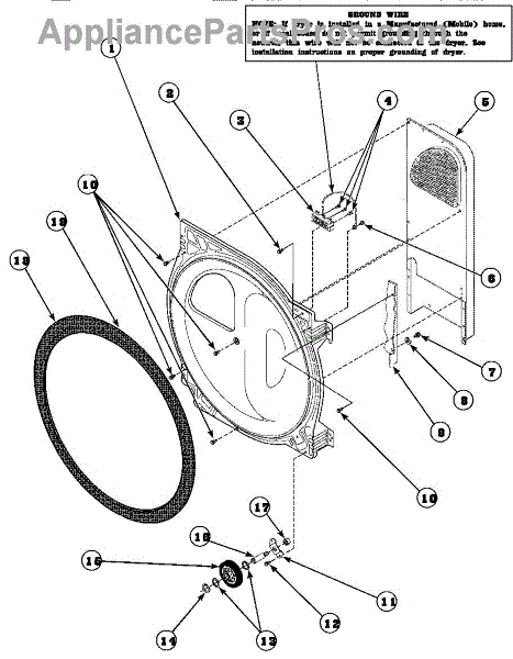 Parts for Amana LG8469W2 / PLG8469W2: 16 - Rear Blkhd / Felt Seal / Cyl Roller & Term Parts