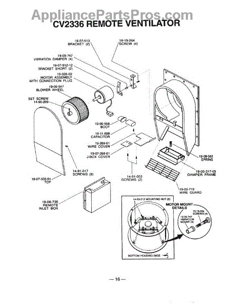 Parts for Thermador TMH30S: 16 - Remote Ventilator Parts