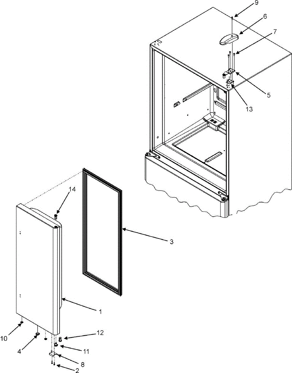 This top hinge assembly mounts at the upper corner of the cabinet to support the refrigerator door and allow smooth pivoting. Replacing a worn hinge restores proper door alignment and helps the gasket seal reliably.