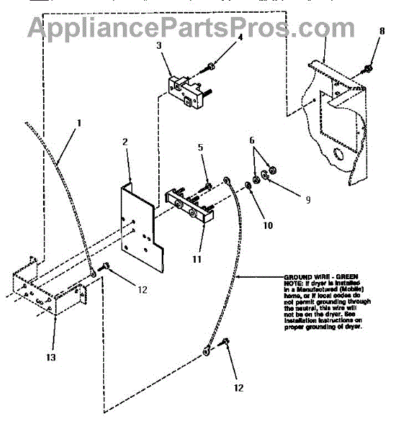 This terminal block connects the appliance to household power, providing a secure point for the incoming power cord wires. Replacing a damaged terminal block restores a solid electrical connection and reduces fire risk. What it does: