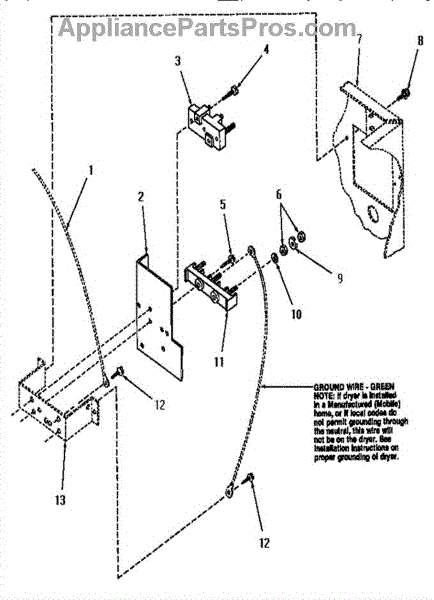 This terminal block connects the appliance to household power, providing a secure point for the incoming power cord wires. Replacing a damaged terminal block restores a solid electrical connection and reduces fire risk. What it does: