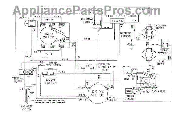 Parts for Maytag LSG7804AAE: 16 - Wiring Information-Dryer Parts