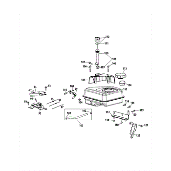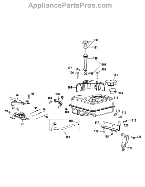 Complete fuel tank assembly for snow throwers and tillers. Includes tank and mounting hardware. Replace if cracked, leaking, or damaged during storage.