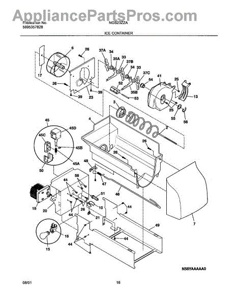 The Ice Container Assembly is an OEM replacement part for Frigidaire refrigerators that stores ice made by the ice maker. It includes the container, auger for ice dispensing, and other mechanisms for storage and dispensing.
