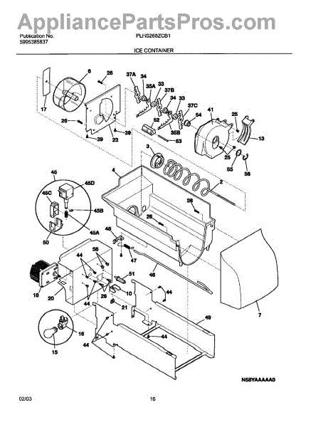 The Ice Container Assembly is an OEM replacement part for Frigidaire refrigerators that stores ice made by the ice maker. It includes the container, auger for ice dispensing, and other mechanisms for storage and dispensing.