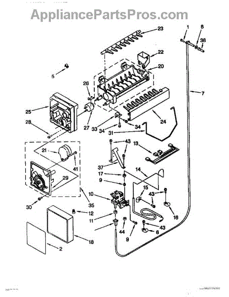 • Works with the refrigerator's water inlet and control signals to dump ice into the bin when ready.