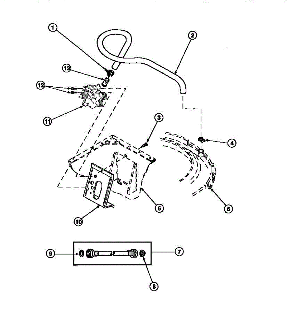 Rubber inlet hose that connects your washer to the water supply. Replace if cracked, leaking, or worn. Standard 5-foot length with included washers.