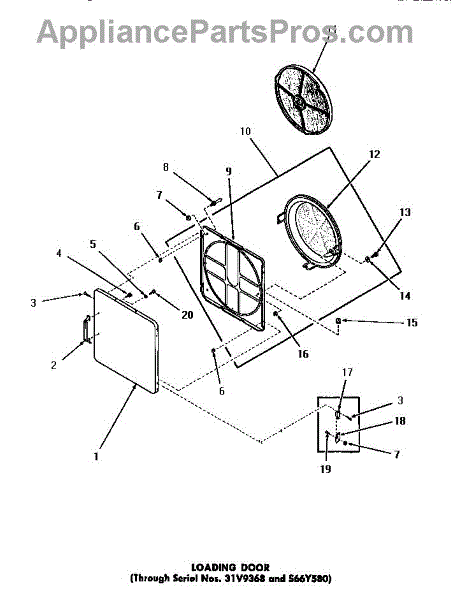 Parts for Amana DG3250: 17 - Loading Door (Thru Sn 31V9368 & S66y580) Parts