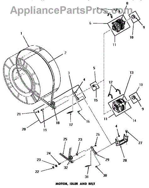 Parts for Amana DE3231: 17 - Motor, Idler & Belt Parts