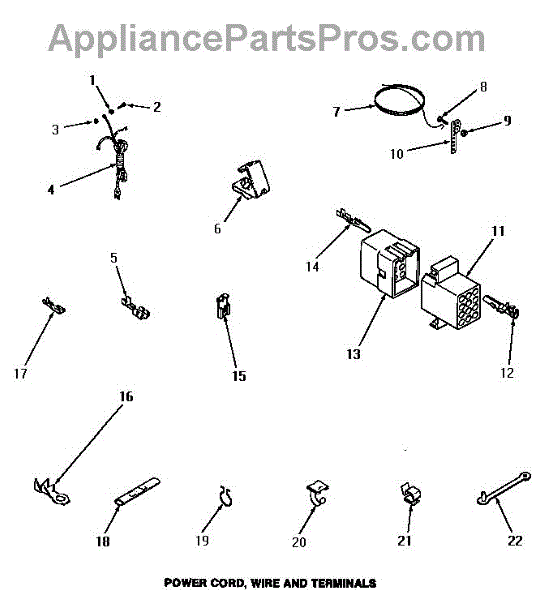 Parts for Amana FA6121: 17 - Power Cord, Wire & Terminals Parts