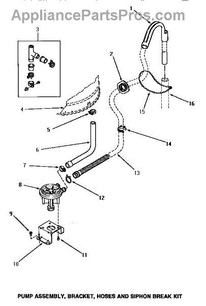 Parts for Amana AWM332: 17 - Pump Assy / Brkt / Hoses & Siphon Break Kit Parts