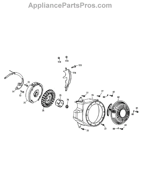 Replacement flywheel for small engines. This rotating wheel component stores rotational energy. Order a new one if yours is cracked, rusted, or damaged.