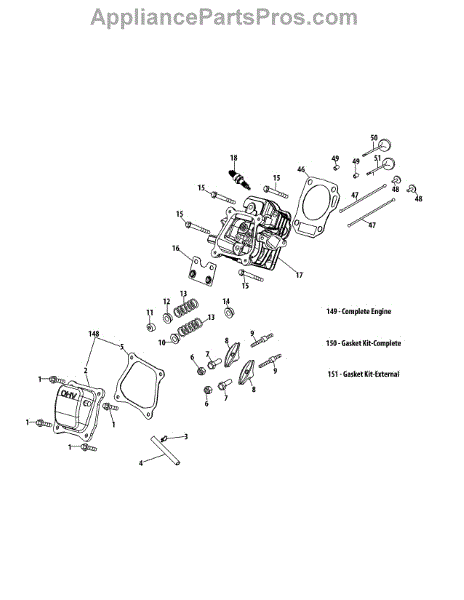 This is a genuine OEM replacement part that contains the necessary parts for replacing the cylinder head assembly in lawn and garden equipment with gasoline-powered engines. The cylinder head maintains the airflow to the cylinders. This airflow is responsible for fuel combustion. If the cylinder head is cracked or broken, fuel combustion is not efficient. When the airflow is blocked or lessened due to cracks and damage, engine performance suffers. This is a complete cylinder head assembly kit. It contains the cylinder head, valve kits, cylinder head gasket, muffler stud, muffler stud assembly, valve springs and spring retainers, valve cover gasket, exhaust valve adjuster, carburetor gasket, carburetor stud, and insulator. All parts should be replaced when doing a cylinder head assembly replacement to ensure all parts are in new condition.The cylinder head assembly is sourced directly from the manufacturer. It is sold as an individual kit containing all the parts. The cylinder head assembly is designed for use in leaf blowers, wood chippers, tillers, log splitters, and other small engines manufactured by Troy-Bilt, Cub Cadet, MTD, Yard-Machines, and other small engines.