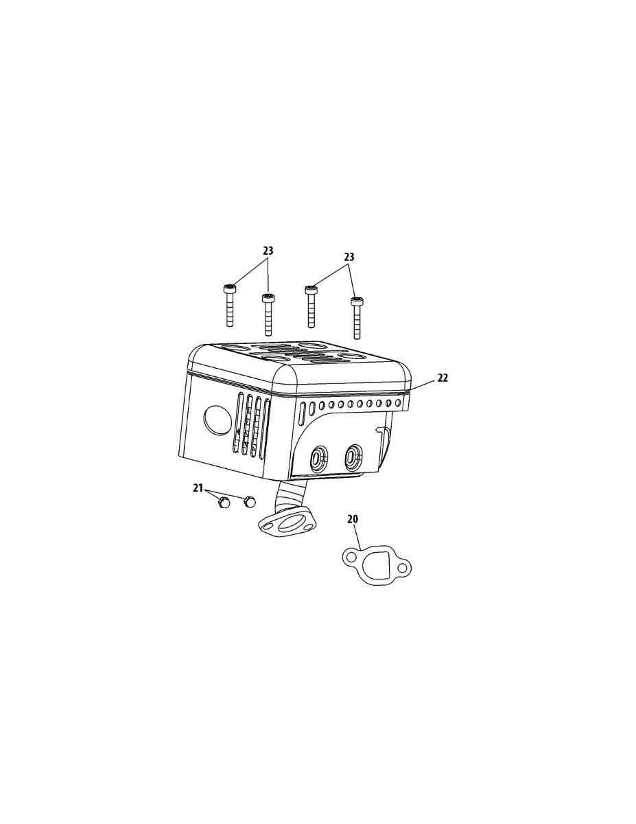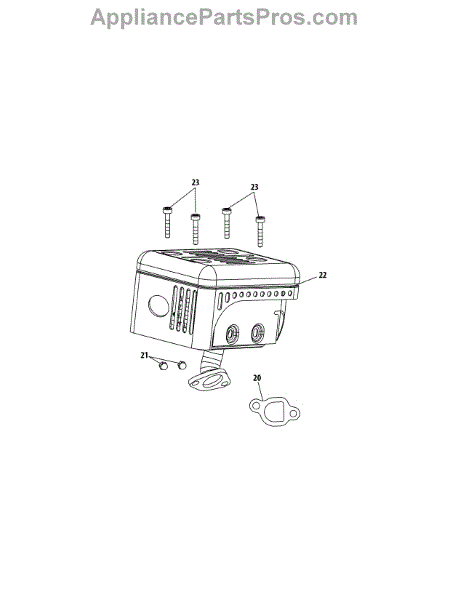 Muffler assembly for tillers and lawn equipment engines. Replaces cracked, rusted, or damaged mufflers. Installs on exhaust port to reduce noise.