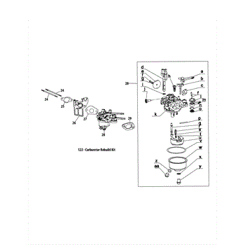 This carburetor rebuild kit is designed for use in a variety of lawn and garden engines. It contains the necessary components to rebuild the carburetor when it is not working. The air to fuel ratio is controlled by the carburetor. This mixture goes to the cylinder to ignite the engine. When the carburetor is not working properly, the ratio is not correct, and the engine does not run smoothly. If the carburetor is the suspected point of failure on the machine, test it by removing the air filter and pouring a small amount of gas directly into the carburetor. If the engine fires up but then dies, the carburetor needs to be repaired or replaced. Rebuilding the carburetor is less expensive than replacing it and can be done in a short time. Always work in an area with adequate ventilation. Remove the fuel and spark plug from the machine before starting. Remove the carburetor and replace the gaskets using the rebuild kit. Reinstall the carburetor and all the parts removed while working on the machine. This carburetor rebuild kit is sold as an individual part. It is compatible with log splitters and other small engines manufactured by MTD and Troy-Bilt.