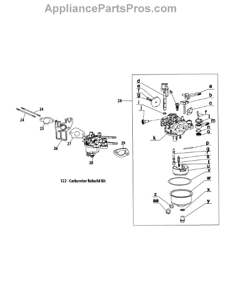 This carburetor rebuild kit is designed for use in a variety of lawn and garden engines. It contains the necessary components to rebuild the carburetor when it is not working. The air to fuel ratio is controlled by the carburetor. This mixture goes to the cylinder to ignite the engine. When the carburetor is not working properly, the ratio is not correct, and the engine does not run smoothly. If the carburetor is the suspected point of failure on the machine, test it by removing the air filter and pouring a small amount of gas directly into the carburetor. If the engine fires up but then dies, the carburetor needs to be repaired or replaced. Rebuilding the carburetor is less expensive than replacing it and can be done in a short time. Always work in an area with adequate ventilation. Remove the fuel and spark plug from the machine before starting. Remove the carburetor and replace the gaskets using the rebuild kit. Reinstall the carburetor and all the parts removed while working on the machine. This carburetor rebuild kit is sold as an individual part. It is compatible with log splitters and other small engines manufactured by MTD and Troy-Bilt.