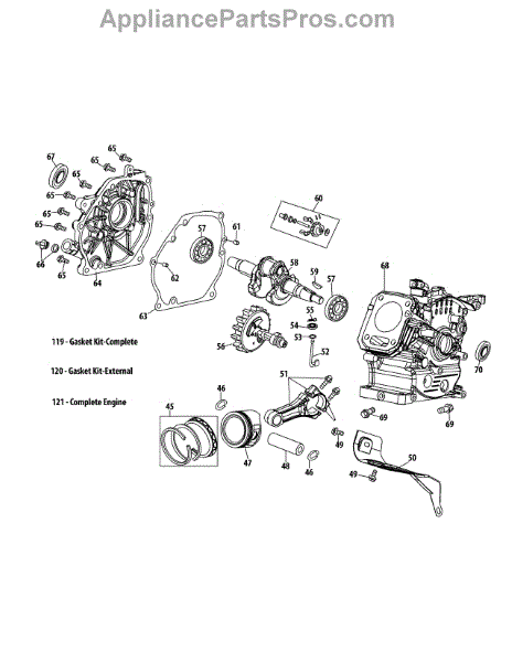 This is a complete gasket kit that is sold as a genuine OEM replacement for MTD lawn and garden equipment engines. The engine contains various gaskets throughout the components that are responsible for creating a good seal and ensuring the proper flow of air and fuel through the equipment. Over time, these gaskets can become worn, brittle, or warped and should be replaced.It is always best to replace all of the gaskets at the same time with this OEM complete gasket kit. It is manufactured by MTD and designed to work with select engines from Troy-Bilt, MTD, and Cub Cadet. It is a good idea to inspect gaskets while performing other engine repairs or maintenance. This can help identify issues before they become bigger problems and allow for a quick gasket repair instead of a total engine overhaul. The gaskets should be replaced one at a time and the area where they sit should be cleaned to ensure a good seal. Never take all of the gaskets out and try to replace them at once. It can be confusing and it may be difficult to get things back together. This complete gasket kit includes all of the gaskets that are needed for a full engine replacement.