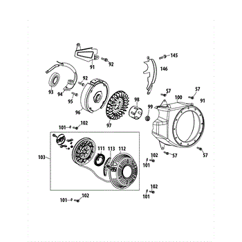The recoil starter assembly is comprised of the housing, the recoil spring, the starter pulley, the starter rope, and the plastic starter grip. It creates the motion that spins the flywheel to engage the engine. The grip is pulled, which extends the rope and activates the starter spring, which then engages the starter pulley and the flywheel, respectively. Over time, various components of the recoil starter can become damaged or worn with regular use. This is often going to require a replacement and in most cases, it will be easier to replace the entire assembly than a single component. This genuine OEM recoil starter is manufactured by MTD and is made to exact standards. It can be used with more than 150 MTD engines on lawn equipment, including from brands like Craftsman, Bolens, Yard-Man, Yard Machines, Remington, Husky, RYOBI, and Cub Cadet. This replacement assembly includes a limited parts warranty and includes all components: the plastic housing, starter pulley, pull rope, starter grip, and starter spring. The hardware for securing this housing is sold separately.