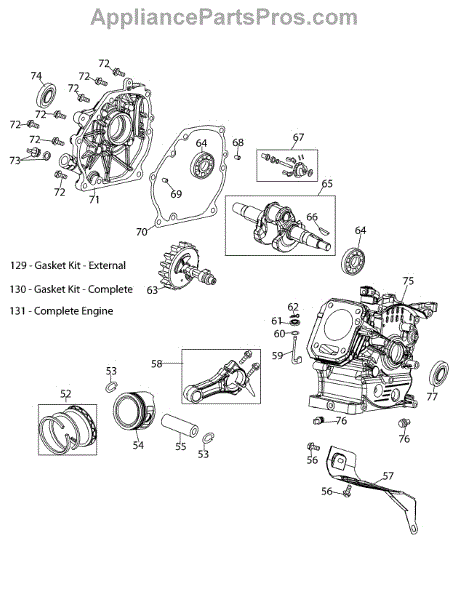 This is a complete gasket kit that is sold as a genuine OEM replacement for MTD lawn and garden equipment engines. The engine contains various gaskets throughout the components that are responsible for creating a good seal and ensuring the proper flow of air and fuel through the equipment. Over time, these gaskets can become worn, brittle, or warped and should be replaced.It is always best to replace all of the gaskets at the same time with this OEM complete gasket kit. It is manufactured by MTD and designed to work with select engines from Troy-Bilt, MTD, and Cub Cadet. It is a good idea to inspect gaskets while performing other engine repairs or maintenance. This can help identify issues before they become bigger problems and allow for a quick gasket repair instead of a total engine overhaul. The gaskets should be replaced one at a time and the area where they sit should be cleaned to ensure a good seal. Never take all of the gaskets out and try to replace them at once. It can be confusing and it may be difficult to get things back together. This complete gasket kit includes all of the gaskets that are needed for a full engine replacement.
