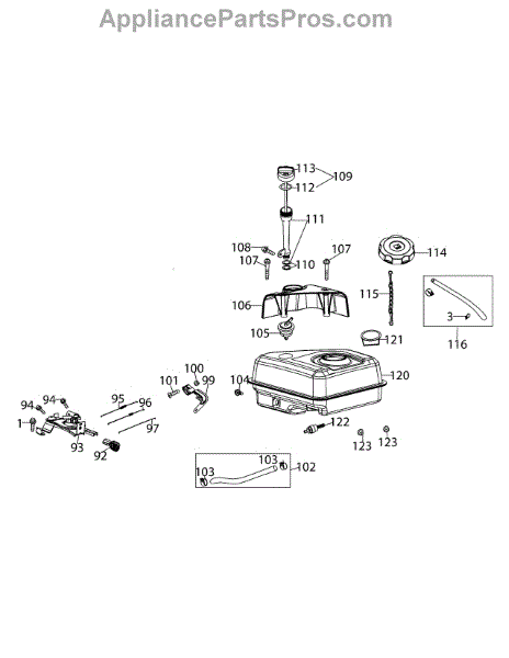This is a genuine OEM replacement tether sourced directly from the manufacturer. It is used on many different fuel tanks on lawn and garden equipment. The tether attaches to the fuel cap and is part of the fuel cap originally. The fuel cap is vented to prevent heat from causing fuel tank expansion and possible explosion. The tether is designed to help hold the fuel cap in place during use. Everyday use may cause the tether to fall off. Without the tether, vibration from use or running into brush and trees can cause the fuel cap to come off. The cap is red to help it stand out on the engine. It has the image of a gas pump to show that it is where the fuel goes.If the tether breaks off and falls into the gas tank, use needle-nose pliers to fish it out. If that does not work, remove the fuel tank and empty the contents into a dish. The tether will fall out. The new gas cap and tether can be screwed in without tools.This tether is a plastic part that is individually sold. It is compatible with many fuel tanks manufactured by MTD, Yard Machines, Cub Cadet, and Troy-Bilt.