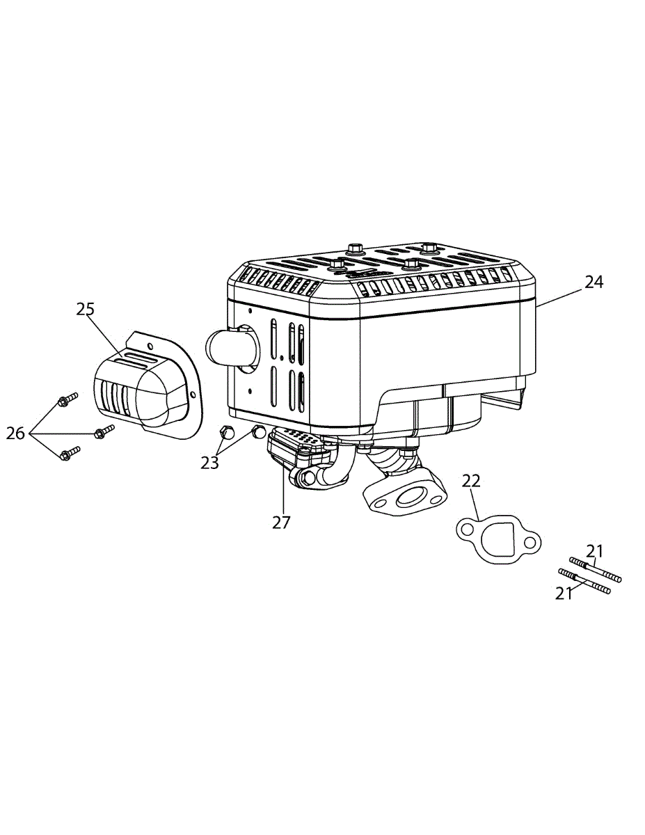 Muffler assembly for small engines on lawn and garden equipment. Reduces noise during operation. Replace if cracked, rusted, or damaged for quieter use.