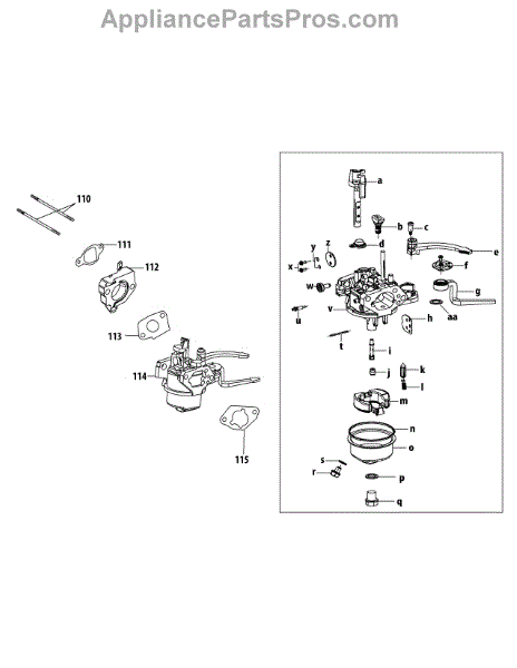 This is a carburetor assembly for lawn equipment. The carburetor is the part that supplies the engine with an enriched mixture of air and fuel. It regulates the flow of air and draws in the right amount of fuel to ensure the engine runs properly. If there is a problem with the carburetor, the engine may produce black exhaust or have difficulty starting or staying running.The carburetor should last for quite a while, but it may eventually need to be replaced. Parts of the carburetor could start to wear out. They could also break or corrode. Before replacing this part, ensure that the engine is cool and the spark plugs have been disconnected.This carburetor assembly is compatible with engines from MTD, Cub Cadet, and Troy-Bilt. This is a genuine OEM sourced replacement part, and it is sold individually.