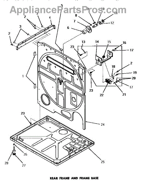 Parts for Amana DE3791: 18 - Rear Frame & Frame Base Parts