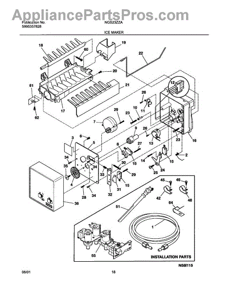 Parts for Frigidaire NGS23ZZAW1: 19 - Ice Maker Parts
