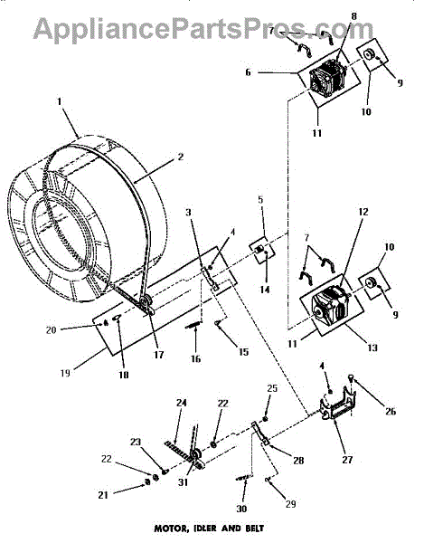 Parts for Amana DG3020: 19 - Motor, Idler & Belt Parts