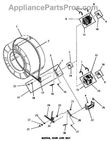 Parts for Amana DG3240: 19 - Motor, Idler & Belt Parts