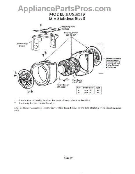 Parts for Thermador HGSI42TS: 19 - Motor Parts