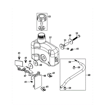 Fuel cap assembly for lawn mowers and garden equipment. Seals the fuel tank to prevent spills and odors. Replace if cracked, worn, or missing seal.