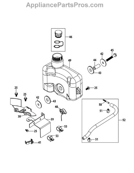 This replacement part is a fuel tank. It is a genuine replacement part made by MTD. This fuel tank is usually found in appliances that use fuel and engines to operate. The fuel tank is responsible for holding the fuel before the carburetor uses it to start the engine during use. A new fuel tank might be needed if the user notices that the current tank is cracked, punctured, or otherwise damaged. This can be due to normal wear and tear. It is recommended that the user wear gloves during this repair as the fuel tank can still be full. This fuel tank is sold individually and is sourced directly from the manufacturer to ensure proper fit. This part is also a genuine OEM replacement part.
