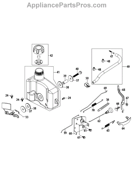 This replacement part is a fuel tank assembly, and it is intended for use in different types of lawn equipment. This is a genuine replacement part made by MTD. Fuel tank assemblies are used in engines that require fuel to run.A new fuel tank assembly might be needed if the current one is damaged or broken. If the user notices that the fuel tank is unable to hold a normal amount of fuel or if the tank is leaking, the part should be replaced. It is possible that overtime the fuel tank can become damaged and might require replacing. It is recommended that work gloves are used to replace this part is fuel is dangerous and can affect the skin.This fuel tank assembly is a genuine OEM replacement part sourced directly from the manufacturer and is sold individually.