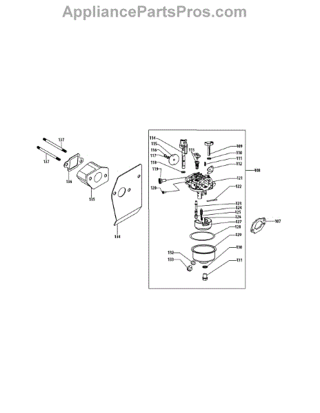 Replace your worn or damaged engine carburetor assembly. This fuel delivery component installs on small engines and needs replacement when cracked or leaking.