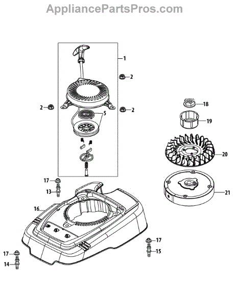 This is a recoil starter assembly for lawn and garden power equipment. When the recoil starter rope is pulled, this causes the spark which starts the engine.A new recoil starter assembly will be needed if the recoil or pulley system has broken. The rope may become broken or frayed and the plastic on the pulley could crack. If the rope becomes loose and there is no tension when it is pulled, then a new recoil starter assembly will be needed.This part is a genuine MTD part and is an OEM part sourced directly from the manufacturer and it is sold individually. It is used on engines, lawnmowers, lawn tractors, and log splitters that are manufactured by MTD, Yard-Man, Yard Machines, Cub Cadet, Husky, and Troy-Bilt.