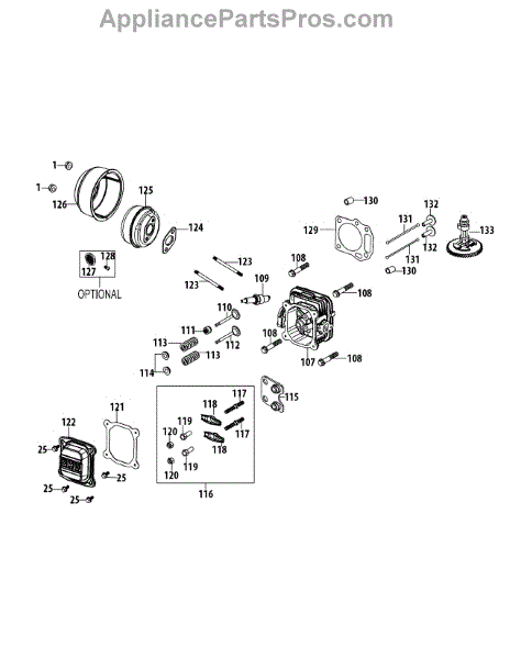 Parts for Yard Machines 11A-B0S5700 / 2014: 1T65ru Cylinder Head & Muffler Parts
