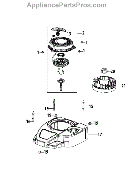 This is a genuine recoil starter assembly that is made to be used with select models of outdoor power equipment. The recoil starter assembly houses the starter rope and pulley, the spring, and other components that are responsible for engaging the engine. When the handle is pulled, the rope will cause the spring to retract, engaging the flywheel, which then turns over the engine and along with the spark plug, allows the engine to run. This durable assembly is subject to repetitive motion, which makes it a common replacement part. Using a genuine OEM part like this will ensure proper operation. This part is manufactured by MTD and meets exact OEM standards. It is also compatible with select models from Troy-Bilt, Cub Cadet, Yard Man, Yard Machines, Huskee, Ryobi, and Craftsman. The starter recoil assembly attaches with three screws, which are sold separately and will require a separate purchase if they are needed. The assembly should only be replaced when the unit is cooled and disconnected from power. Gloves should be worn to protect the hands, as well.