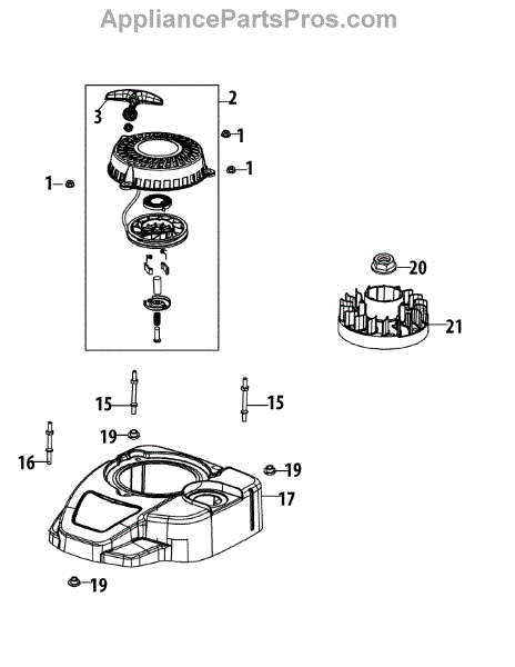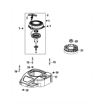 This is a genuine recoil starter assembly that is made to be used with select models of outdoor power equipment. The recoil starter assembly houses the starter rope and pulley, the spring, and other components that are responsible for engaging the engine. When the handle is pulled, the rope will cause the spring to retract, engaging the flywheel, which then turns over the engine and along with the spark plug, allows the engine to run. This durable assembly is subject to repetitive motion, which makes it a common replacement part. Using a genuine OEM part like this will ensure proper operation. This part is manufactured by MTD and meets exact OEM standards. It is also compatible with select models from Troy-Bilt, Cub Cadet, Yard Man, Yard Machines, Huskee, Ryobi, and Craftsman. The starter recoil assembly attaches with three screws, which are sold separately and will require a separate purchase if they are needed. The assembly should only be replaced when the unit is cooled and disconnected from power. Gloves should be worn to protect the hands, as well.