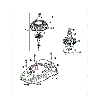 This is a starter recoil assembly. It is used when starting small lawn equipment and other machines. It engages the flywheel. With time and use, any or all of the recoil can wear out or become damaged, including the spring, housing, rope, or pulley. If something is damaged or worn out, the entire starter recoil assembly must be replaced. Signs that the part requires a repair include an engine that won't start or has difficulty engaging.Replacing a starter recoil assembly is easy and can be done in about 15 minutes. A nut driver and screwdriver are required for the repair. Wear gloves. Make sure the equipment is completely cooled before beginning the recoil assembly replacement. After putting tension on the spring and pulley, hold the housing securely to prevent it from releasing.The starter recoil assembly is a genuine OEM-authorized replacement part. It is sold individually. The starter recoil assembly is compatible with MTD, Cub Cadet, Yard Machines, Husky, Yard-Man, and Troy-Bilt brands. It is a complete part that includes the housing, rope, pulley, and recoil spring. It works with small engines, lawnmowers, log splitters, trimmers, and other similar equipment.